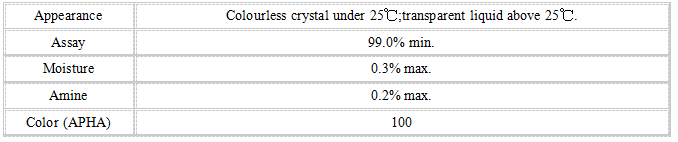 Properties: Colourless crystal under 25℃;transparent liquid above 25℃.chemical character stability and non-corrosiveness.